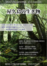 1993年12月、屋久島は、白神山地と共に日本で初めての世界自然遺産に登録されました。屋久島の世界自然遺産登録20周年を記念し、屋久島の自然を改めて見つめ直す機会として、本年度は、特別展「屋久島の自然」を開催します。